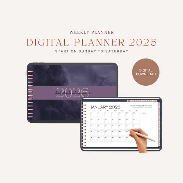 Minimalist Digital Planner - PDF - Monthly and Weekly - 6 Customizable Tabs
